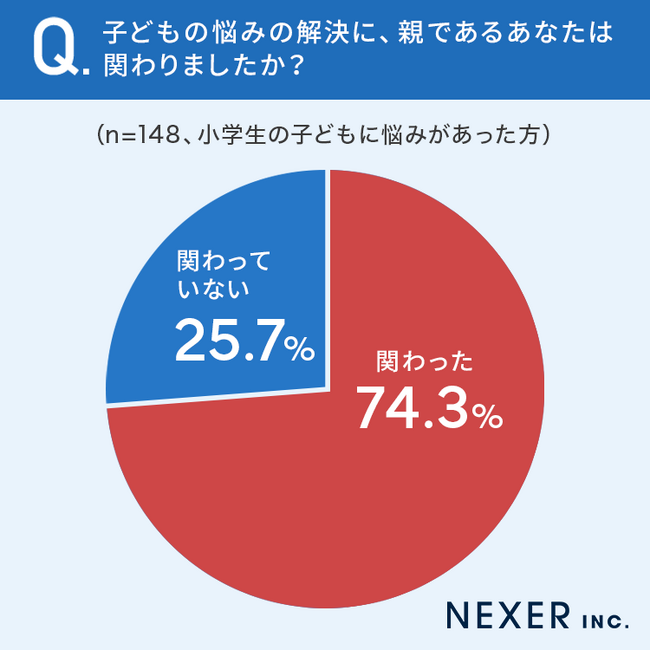 74.3%と7割以上の方が「子どもの悩みの解決に関わった」と回答しています。