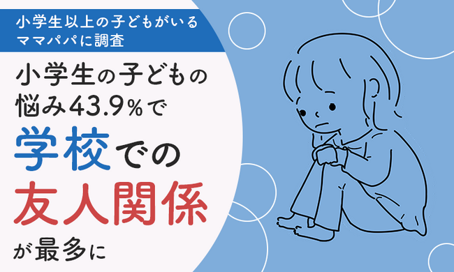 小学生の子どもの悩みについて聞いてみたところ、43.9%で「学校での友人関係」が最多でした。