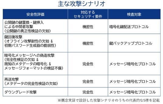 ■ 「メッセージの偽造」「暗号化メッセージの解読」「攻撃の長期化」などにつながる重大な脆弱性を発見し、攻撃を回避するための対策手法を構築