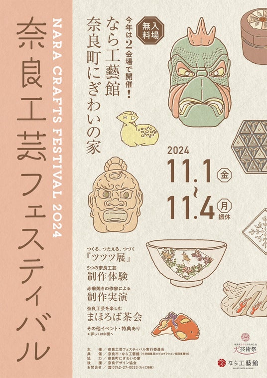 株式会社小学館集英社プロダクションが指定管理者として運営している「なら工藝館」と奈良町にある奈良市の公共施設「奈良町にぎわいの家」の2会場で、「奈良工芸フェスティバル2024」を開催します。