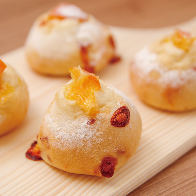 ビタミン豊富な不知火(デコポン)を皮まで使用し、栄養価の高いコンテチーズとともに万座特有のフワフワなパウダースノーと雪山をイメージした柔らかいパンに仕上げました。