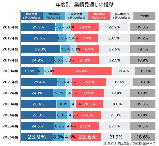 2026年度、「増収増益」を見込む企業は23.9%にとどまる