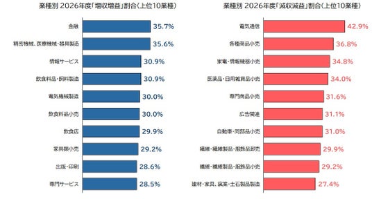株式会社帝国データバンクは、全国2万3,349社を対象に、「2026年度の業績見通し」に関するアンケート調査を実施した。なお、業績見通しに関する企業の意識調査は、2009年3月以降、毎年実施し今回で18回目。