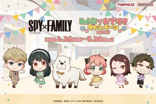 株式会社バンダイナムコアミューズメントは、TVアニメ『SPY×FAMILY』とのコラボキャンペーン「SPY×FAMILY みんなでおでけけキャンペーン in ナムコ」を2024年4月26日(金)~5月26日(日)まで、全国約200店舗の直営アミューズメント施設「ナムコ」および「ナムコオンラインクレーン(以下、ナムクレ)」で開催します。