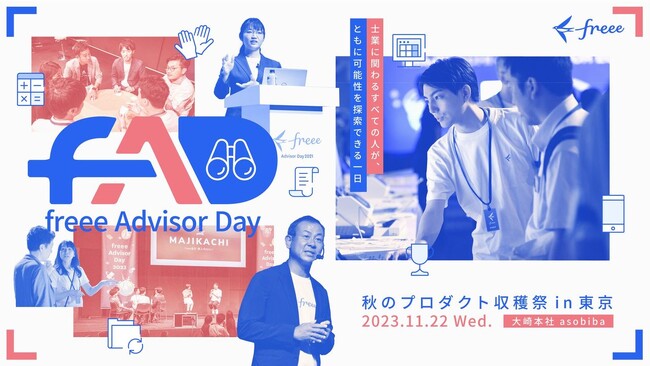 freee株式会社(本社:東京都品川区、CEO:佐々木大輔、以下「freee」)は会計事務所の業務フローの「今とこれから」を一緒に考えるイベント「freee Advisor Day-秋のプロダクト収穫祭-」(※)を11月22日(水)東京・11月24日(金)名古屋・11月30日(木)札幌の3会場で開催します。
