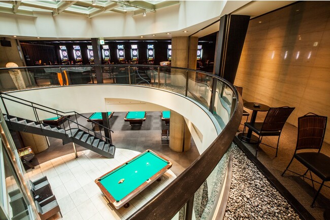 エリア最大級のアミューズメントスポット。吹き抜けのある店内は2階層に分かれており、ビリヤード、ダーツ、卓球、シミュレーションゴルフ、カラオケがお楽しみいただける他、大小3つの個室を完備しプライベートパーティーにも活用いただけます。豊富なオリジナルドリンク&フードメニューを揃え最新鋭の設備とおもてなしで日常を超えた本物をお楽しみください。