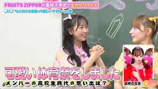 4月26日(土)よる9時放送の第7話では、FRUITS ZIPPERが入学式を迎えた新1年生へのサプライズを敢行するべく、東京・青陵高等学校の入学式に潜入。スペシャルステージにて大人気曲『わたしの一番かわいいところ』、『フルーツバスケット』を披露しました。