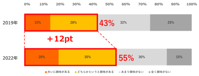 「バイトル」に登録している会員を対象に移住動向に関するアンケートを実施したところ、新型コロナウイルス感染拡大以前と比較して移住への興味は12pt増の55%となりました(※3)。働き方改革やライフスタイルの変化が影響し、地方移住への意識が高まっているものと考えられます。