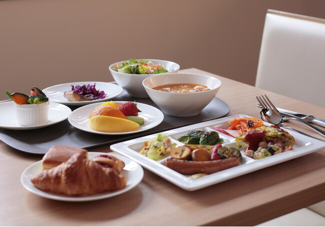 【ご朝食】 焼きたてパンとごちそう野菜の朝ごはん