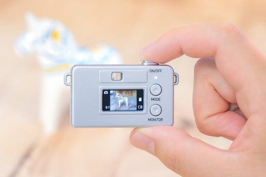 クラシックカメラをぎゅっと小さくしたようなかわいいデザインのトイカメラ。指でつまめるほど小さくて軽量。