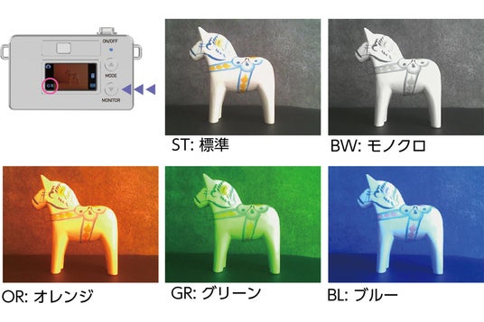 静止画モード・動画モード時にMONITORボタンを押すと、カラーフィルターを変更できます。