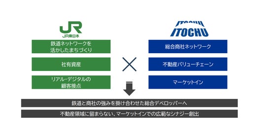 JEREとIPDが経営統合することで、JR東日本グループの「信頼」というブランド力に加え、広大な事業エリアにおける首都圏及び新幹線を中心にした鉄道ネットワークや社有地などの強いパイプライン、新駅設置等の交通ネットワーク強化や大規模まちづくりノウハウ、強固な顧客接点に、伊藤忠グループのマーケットインの視点や、IPDの開発力・企画力・技術力、住宅事業のノウハウ等の一気通貫の不動産バリューチェーン、総合商社としてのビジネスネットワークなどを組み合わせることで、独自の強みを持つデベロッパーとなることが可能になります。