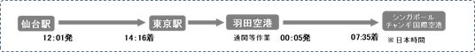 ・仙台→シンガポールへの輸送 一般的に24時間を超える輸送時間を約19時間に短縮