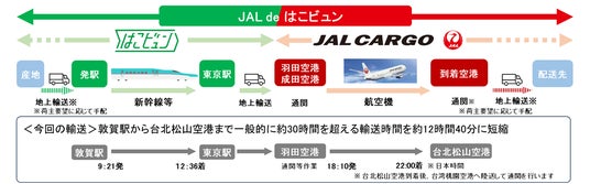 ○東日本旅客鉄道株式会社(本社:東京都渋谷区、代表取締役社長:喜㔟 陽一、以下「JR東日本」)と日本航空株式会社(本社:東京都品川区、代表取締役社長 グループCEO:鳥取 三津子、以下「JAL」)は、JR東日本グループの列車荷物輸送サービス「はこビュン」とJALグループの国際線航空貨物輸送を組み合わせた、新輸送サービス「JAL de はこビュン」を2026年1月13日(火)に販売開始します。