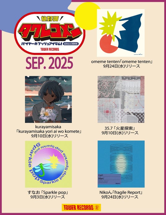 タワーレコードでは、2025年9月のタワレコメンのプッシュアイテムが決定しました。