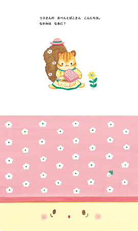 絵本のページをめくると、お弁当箱をあけようとしているどうぶつのイラストが。