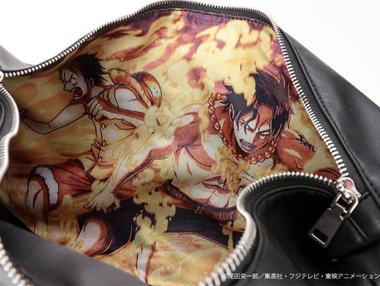 内側はルフィとエースとのシーンを大胆にプリント。BAGを開ける度にあのシーンがよみがえるようなデザインに仕上げました。