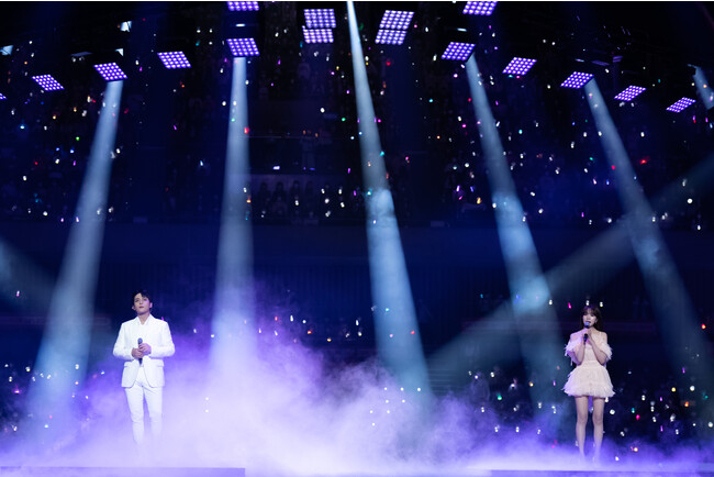 16日には、ATEEZのパフォーマンスでスタートを切り、K-POPとK-コンテンツが見事に融合したステージが続きました。清涼で澄んだ声とラブリーなビジュアルでソロアーティストとしての地位を固めているJOYURI(チョ·ユリ)はATEEZのジョンホとのコラボレーションステージとして、日本で大ヒットした人気ドラマ「愛の不時着」(tvN)のOSTの中からペク·イェリンの「再び私は、ここ(Here I Am Again) 」を熱唱。MCを担当したファン·ミンヒョンは最終回を終えた人気ドラマ「還魂」(tvN)のOSTの中から、自身が演じた「ユル」のテーマ曲でありチョン·セウンが歌う「眺めるだけ(Just Watching You)」でドラマの中で感じた切なさを観客に伝えました。