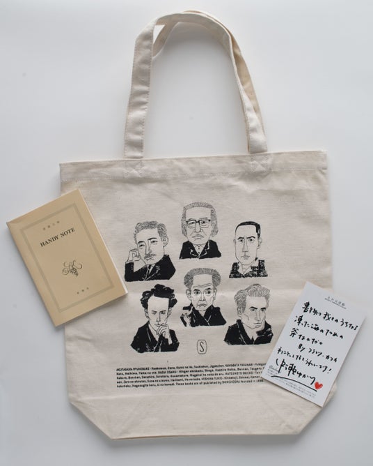 イラストレーター・柳智之さん描き下ろしの6人の文豪がプリントされたトートバッグや、非売品のメモ帳など豪華特典が盛りだくさん!