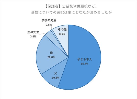 受検生の保護者に、受検についての選択は主に誰が決めたかを聞いたところ、55.4%の保護者が「子ども本人」と回答し、昨年の調査と比べて約5ポイント上昇した。