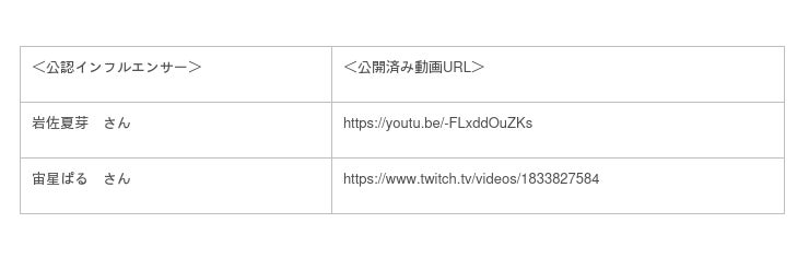 ・近日公開の公認インフルエンサー 動画チャンネルURL