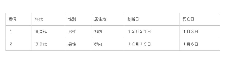都内で新型コロナウイルスに感染した方が死亡されましたのでお知らせします。