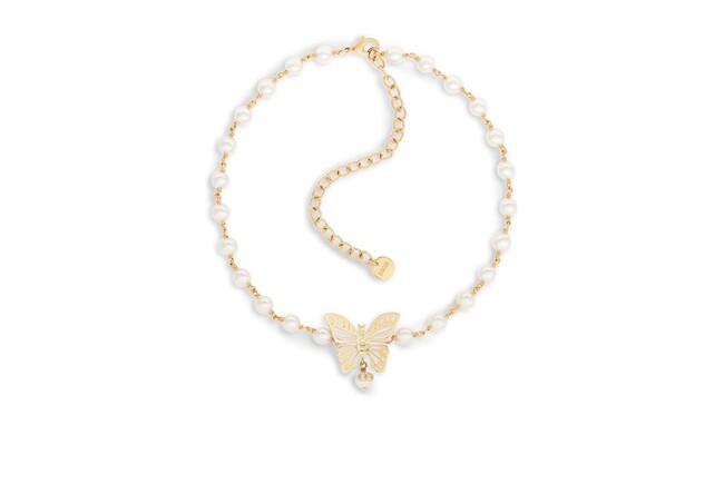 マリア・グラツィア・キウリによってデザインされた2024年クルーズ コレクションであらゆるルックにアクセントを加えるアクセサリーの数々は、美しさと繊細さとが融合した魅惑的なバタフライのモチーフによって特徴づけられています。変容を意味する「ディオール メタモルフォーゼ」ベルトを彩るバタフライのモチーフは、緻密にレーザーカットが加えられた後、丹念に磨き上げられており、シルバーの羽を広げて今にも飛び立つような様子が表現されています。バタフライモチーフはネックレスにもアクセントを加えます。このモチーフは溶けた金属を型に注ぎ入れるロストワックス鋳造法によって形作られ、製作には高い精度を要します。仕上げとして、メゾンの永遠のコードであるゴールドで染められ、完成に導かれます。伝統と革新が調和して生み出されるこの類い稀なモデルの数々は、メゾンが長きにわたり大切にしてきたサヴォワールを体現しています。その製作工程を動画からご覧ください。