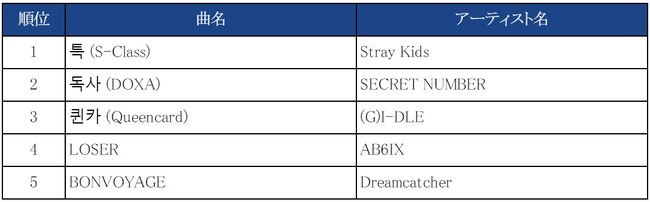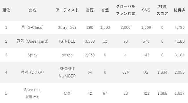 (※)各スコアの割合音源35%、音盤15%、グローバルファン投票(アプリ)20%、SNS10%、放送スコア20%