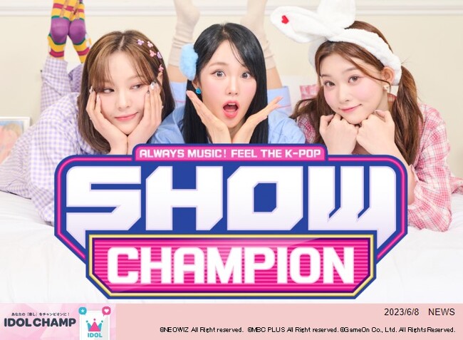 『SHOW CHAMPION(ショーチャンピオン)』とは、韓国MBC PLUSが毎週水曜日18:00~19:00にケーブルTVで放送する音楽番組です。ランキングスコアは『IDOL CHAMP』内からのファン投票も反映され、各要素のランキング結果の割合を元に(※)順位が決定します。日本国内からは、CATV、動画オンデマンドサービスを通じてご視聴いただけます。