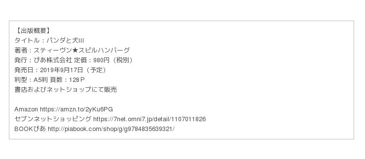 ぴあ株式会社より、インスタフォロワー16万超の人気イラストレーター・スティーヴン★スピルハンバーグ( https://www.instagram.com/steven_spielhamburg/ )のコミック最新刊『パンダと犬III』を9月17日発売。Amazon予約特典に引き続き、対象書店にて本書をご購入いただいた方にも特典をプレゼントします。