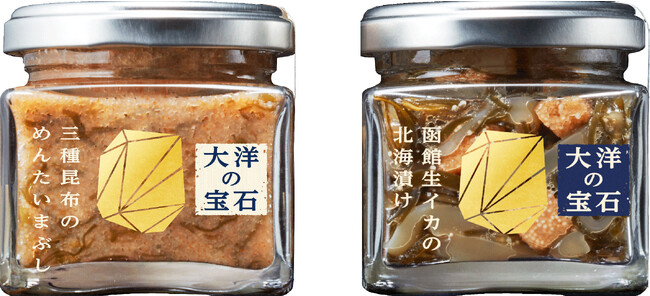 「大洋と農の宝石箱」は、北海道の大地で育てられた湖池屋専用のブランド芋「北海美人」のポテトチップス(農の宝石)とともに、久原本家 北海道が手掛ける北海道の海産物を使った珍味(大洋の宝石)を味わう、北海道の恵みの新しい楽しみ方の提案です。北海道の広大な海と大地で育った素材を最大限に活かし、味作りの技術を注ぎ込み、ここでしか味わえない一品に仕上げました。ひとすくい程の珍味を瓶から取り、ポテトチップスにのせてお召し上がりいただくと、パリパリのじゃがいもとしっとりまろやかな珍味の旨みが口いっぱいに広がります。