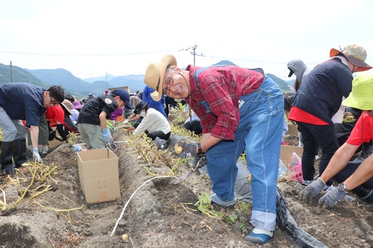 カルビー株式会社(本社:東京都千代田区、代表取締役社長:江原 信)は、約1年かけて全国17カ所にある本社や支店、工場、畑など様々な場所でファンミーティングを行い、総勢600名以上のカルビーファンの皆さまと交流するCalbee『Fan With! Project』をスタートしました。その第1回、第2回として、2024年6月1日(土)に福岡県、2日(日)に岐阜県でそれぞれじゃがいも収穫体験を行いました。