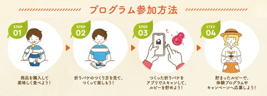 ・折りパケ対象となるカルビー商品の空き袋を指定の形に折りたたんで『カルビー ルビープログラム』上で撮影すると、ルビー(ポイント)を獲得できます。