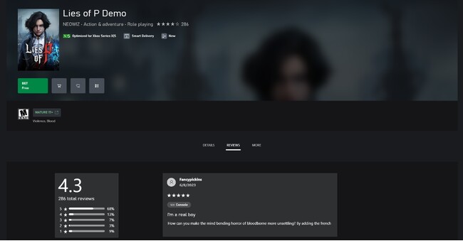 「XBOX」の場合は北米ストア基準でのデモ評価が4.3点(5.0点満点、onestore基準)をマークしており、高い点数を記録しました。
