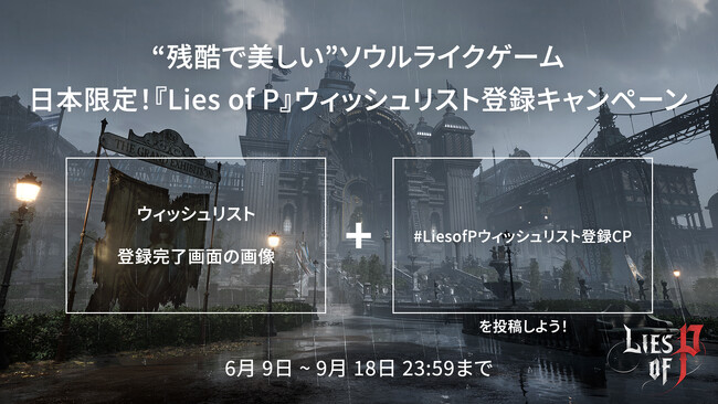 “『Lies of P』Steamウィッシュリスト登録キャンペーン”(以下、本キャンペーン)は、日本国内限定で実施するキャンペーンとなっております。
