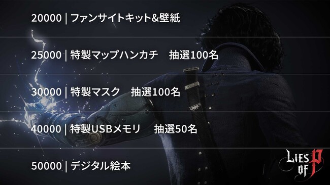 本キャンペーンでは「ウィッシュリスト」に登録していただいた件数に応じて日本国内限定の公式ノベルティ制作とプレゼント企画が始動するというキャンペーンとなっております。