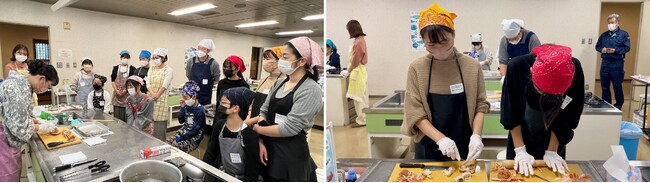2.参加親子が「アジのなめろう」とご当地料理「かに面」作りに挑戦