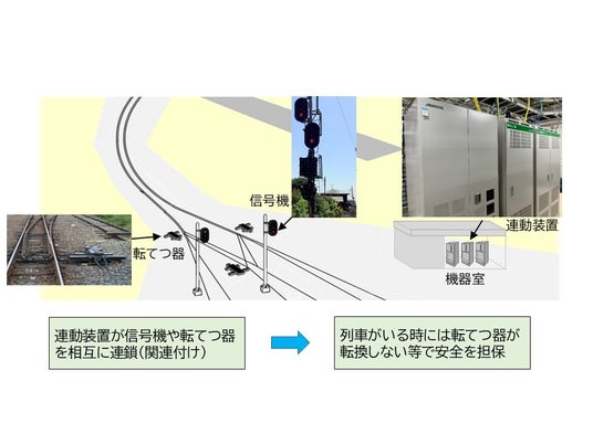 連動装置は、信号機相互間、信号機と転てつ器間などに連鎖関係を設けた装置であり、鉄道における安全の「しくみ」の一つです。安全な列車運行の確保に必要不可欠な装置であり、今後とも継続的に更新投資を進めます。