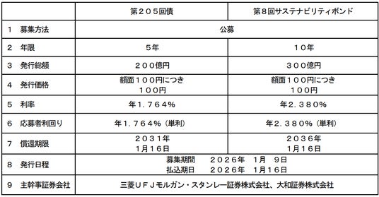 ・発行総額は5年債が200億円、10年債が300億円、合計500億円です。このうち10年債はサステナビリティボンドによる発行です。