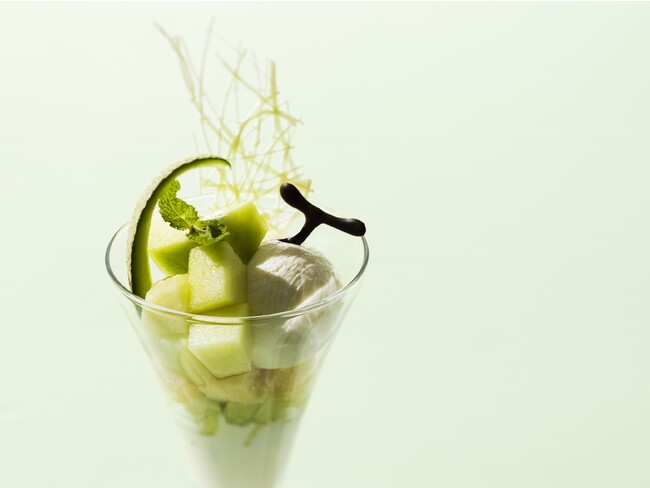 メロンの甘い果肉と杏仁豆腐を合わせた夏らしいパフェ。
