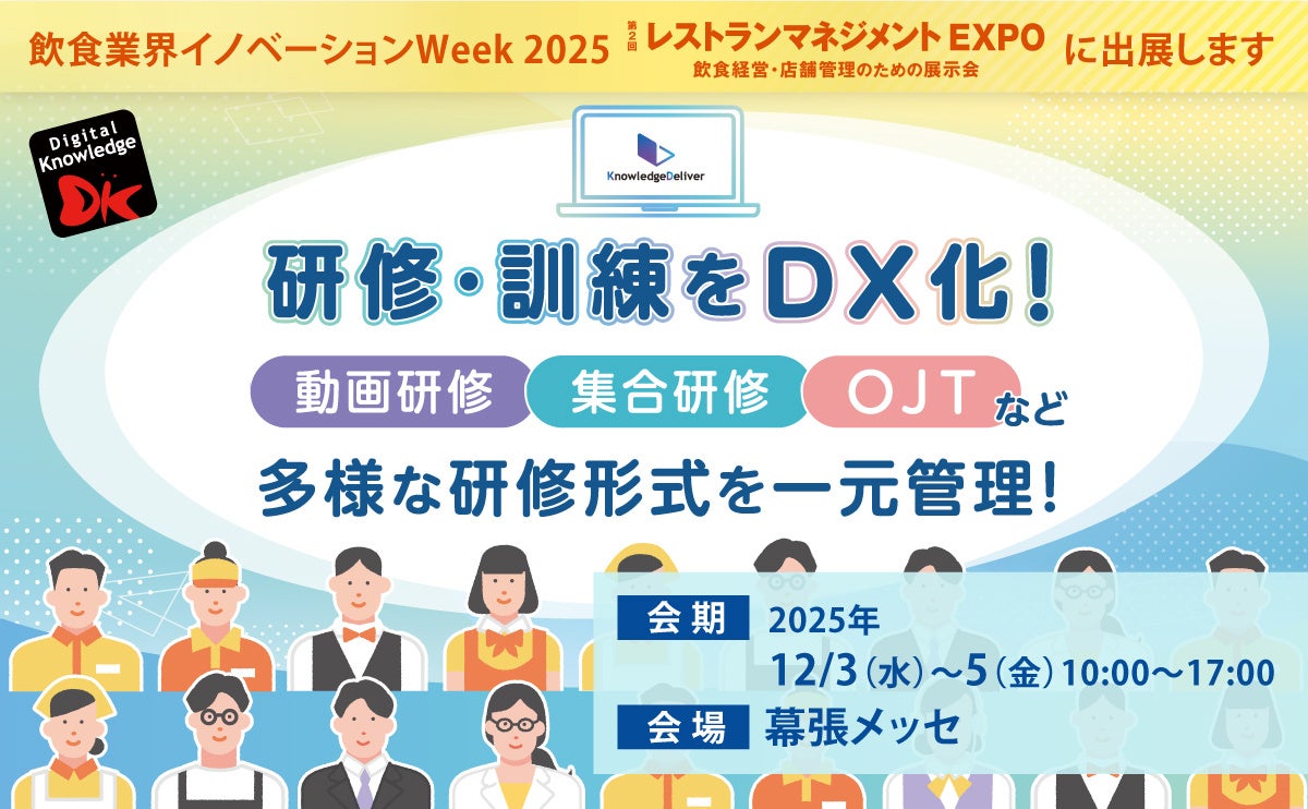 1995年創業のeラーニング専門ソリューション企業、株式会社デジタル・ナレッジ(本社:東京都台東区、代表取締役社長:はが弘明)は、2025年12月3日(水)~5日(金)、飲食店の経営や店舗管理の課題を解決するための専門展、飲食業界イノベーションWeek「レストランマネジメントEXPO」に出展します。