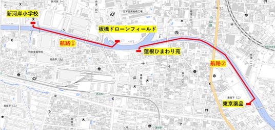 ○東日本旅客鉄道株式会社(本社:東京都渋谷区、代表取締役社長:喜㔟 陽一、以下「JR東日本」)、FPV Robotics株式会社(本社:東京都渋谷区、代表取締役社長:駒形 政樹、以下「FPV Robotics」)、株式会社コア(本社:東京都世田谷区、代表取締役社長執行役員:横山 浩二、以下「コア」)、板橋区(区長:坂本 健)は、社会課題の解決によってWell-beingな社会の実現を目指す「WaaS共創コンソーシアム*1」の取り組みとして、板橋区の新河岸川を中心に設定したドローン航路で、災害時における物資輸送ルートとしての活用可能性を検証する実証実験を実施します。