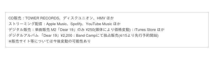 インストゥルメンタルミニアルバム「Dear 19」(ディア ナインティーン・5曲入り/¥2,200)を、神戸のミュージックレーベル『fish for music』よりCD販売&ストリーミング配信、デジタル販売の同時リリース。