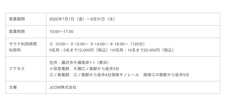 ※J:COMシーサイドサウナオープン時のリリースはこちら