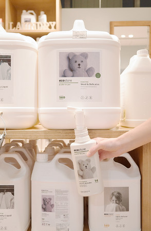 リフィルステーションとは、ナチュラルデイリーケアブランドの「エコストア」が店頭で行っている洗剤の「量り売り」販売のこと。