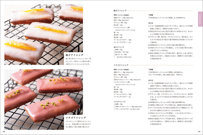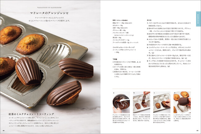 その他、基本のマドレーヌやフィナンシェにコーティングしたり、フレーバーを変えるなどのアレンジレシピを合計で48種をご紹介。