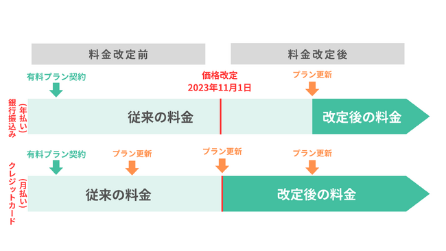 2023年11月1日以降で新料金の適応となります。ただし年間契約の場合は、次回契約更新日での適用となります。
