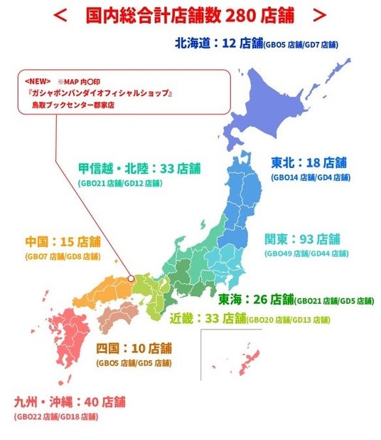 株式会社バンダイナムコアミューズメントは、株式会社バンダイのカプセルトイブランド「ガシャポン」の専門店『ガシャポンバンダイオフィシャルショップ』鳥取ブックセンター郡家店を、2024年4月11日(木)、「鳥取ブックセンター郡家店」(鳥取県八頭郡八頭町)内にオープンします。