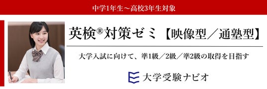 株式会社増進会ホールディングス(Z会グループ)のグループ会社、株式会社栄光(本社:東京都千代田区 代表取締役社長:下田勝昭)が運営する大学受験専門塾「大学受験ナビオ」は、中学1年生~高校3年生※を対象に、「英検(R)対策ゼミ」を開講しています。映像型と通塾型どちらかご希望の形態で受講することができます。