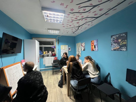 キーウ市内にはリアルな教室を設置。オンラインでの日本からの配信授業に加え、現地の教室で仲間と共に学ぶ環境を提供することで、学生のモチベーション維持とコミュニティ形成を支援しています。